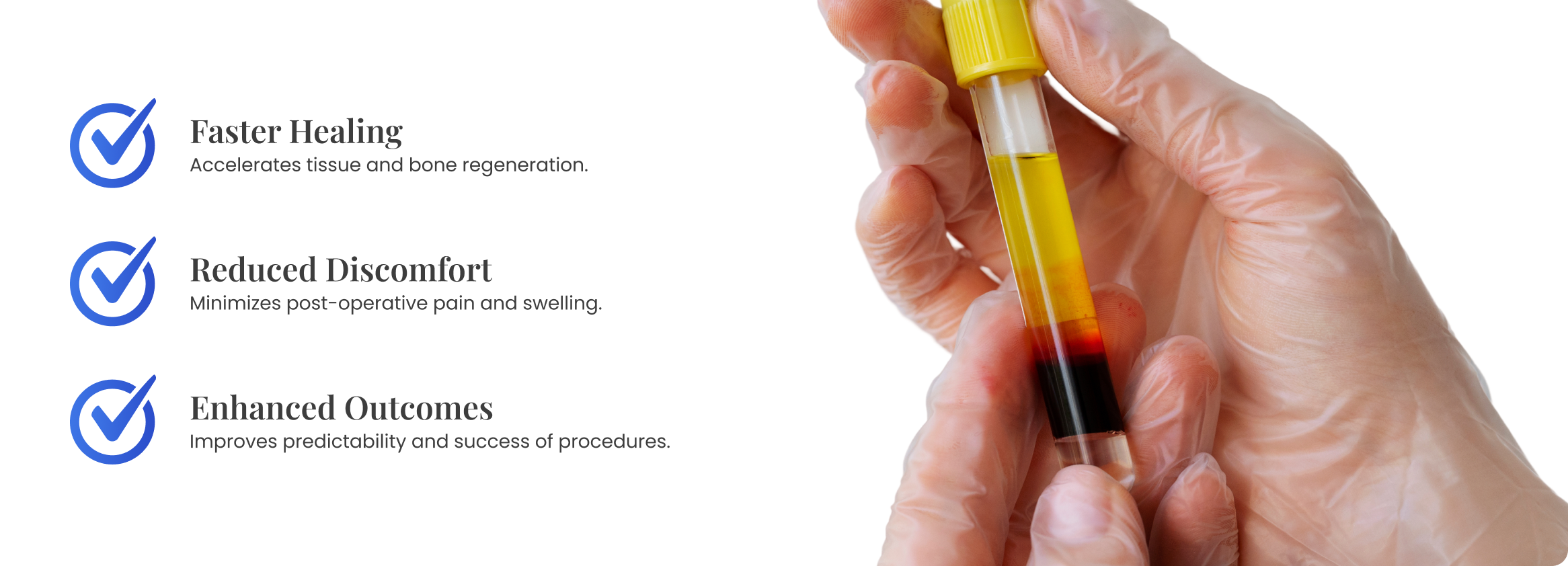 PRP's concentrated growth factors significantly reduce healing time, minimize discomfort, and enhance the quality of tissue regeneration, leading to stronger, more predictable outcomes.